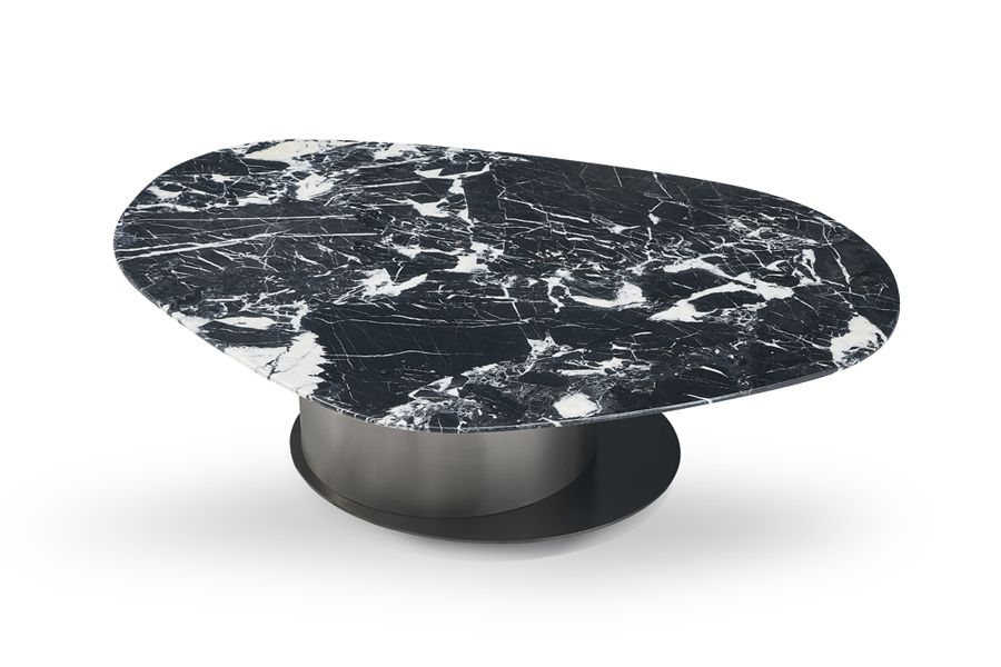 Asymmetric Black Marble Oval Coffee Table with Metal Pedestal
