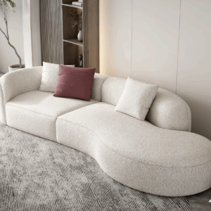 Contemporary Curved Sofa in Cream Boucle Fabric
