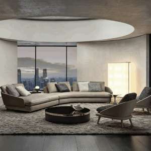Luxury Beige Upholstered Curved Sectional Sofa