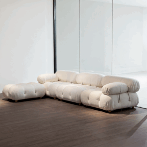Modern Bouclé Fabric Modular Sofa with Marble Side Table