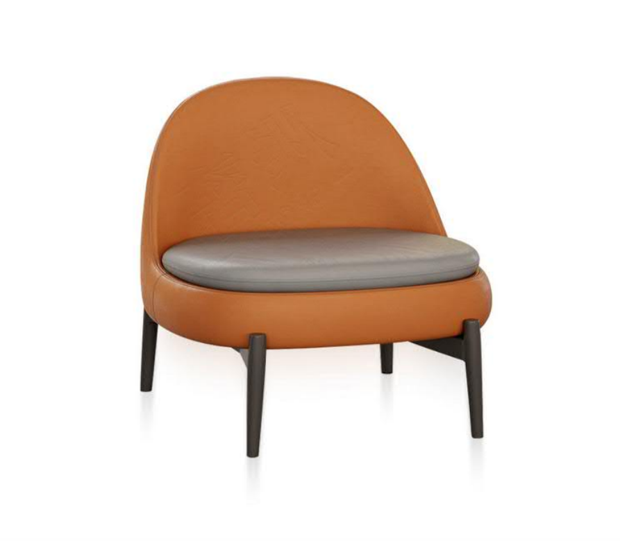 This luxury single sofa features a distinctive barrel silhouette and a high back, ensuring an enveloping and comfortable seating experience. The design is characterized by a striking two-tone split using soft leatherette in caramel and beige, with elegant vertical stitching details on the backrest. High-density foam filling guarantees both softness and firm support. With its unique aesthetic and sturdy structure, this sofa serves as an excellent statement chair for hotel lobbies, high-end clubs, business reception areas, or a modern living room.