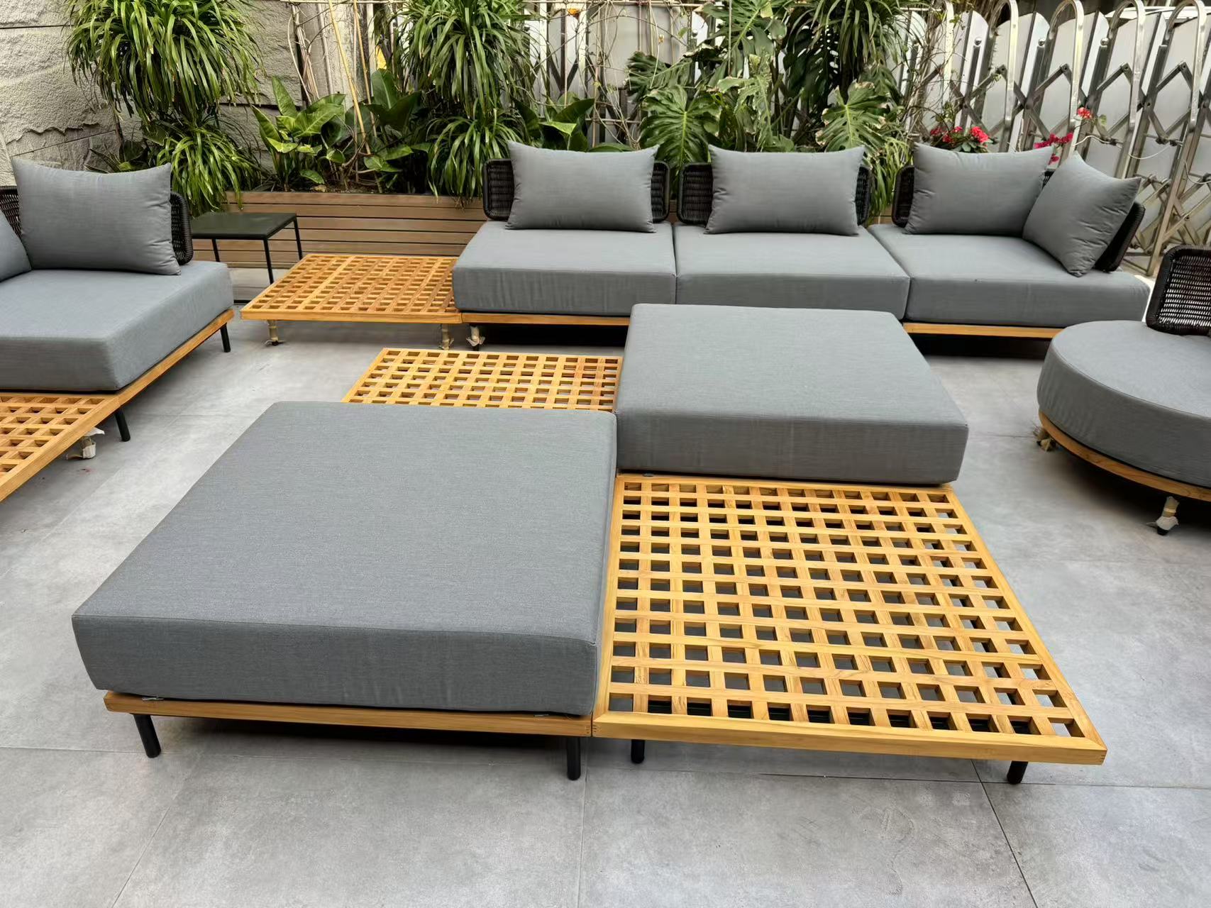 This custom outdoor sofa is designed for high-end resort, hotel, and hospitality projects. Built for long-term outdoor use, it combines a durable structure with weather-resistant materials, making it suitable for seaside, poolside, and open-air lounge areas.