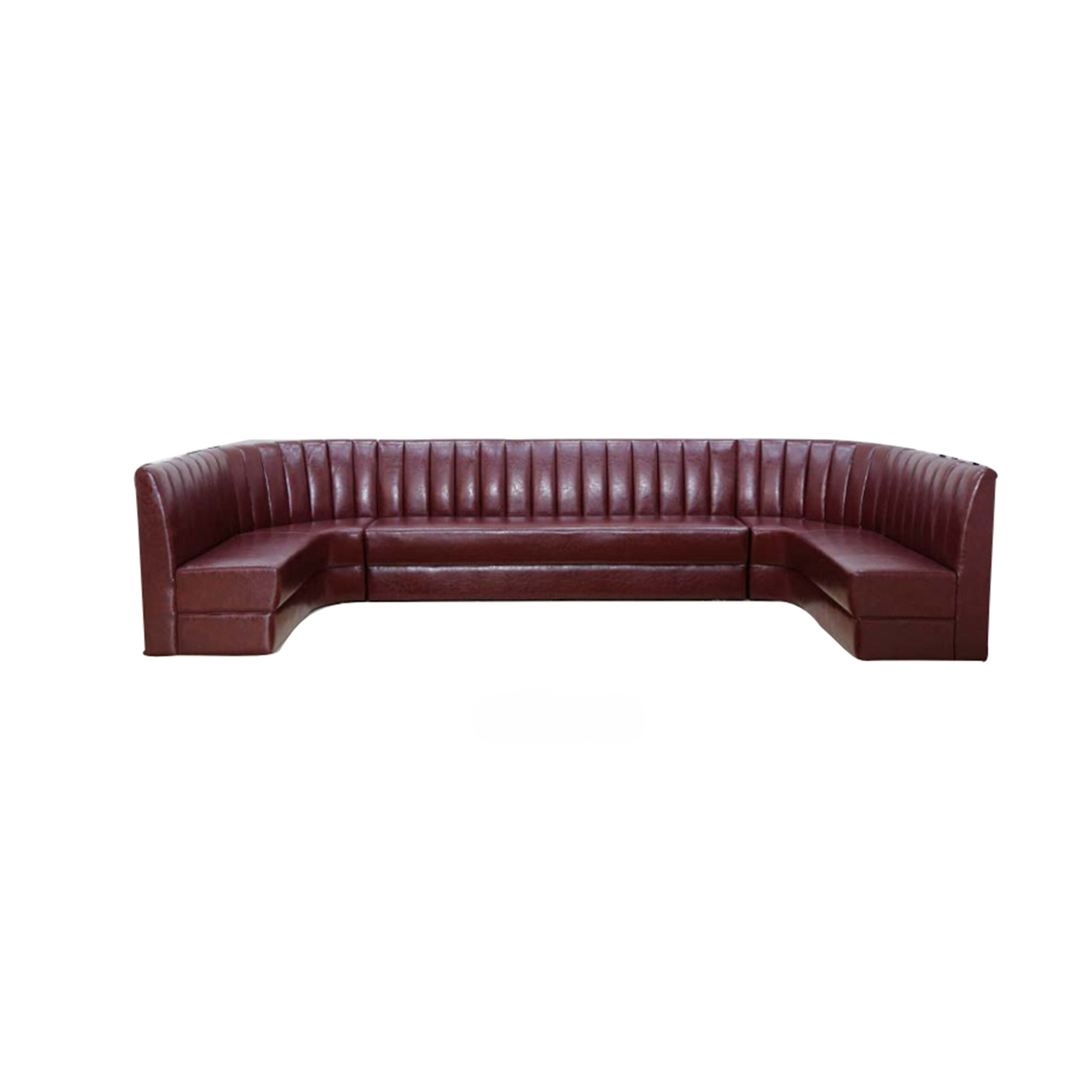 Burgundy Leather Upholstered Curved Banquette