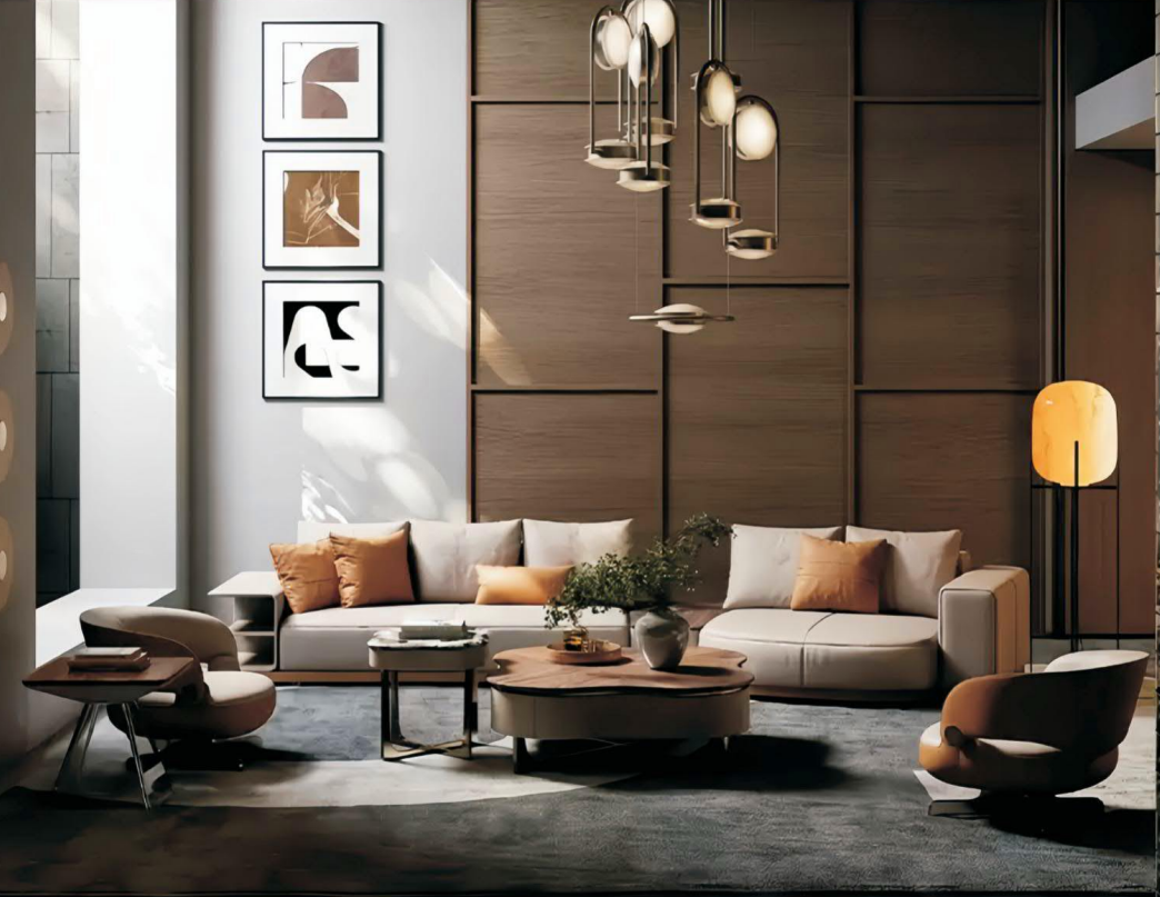 This modern neutral – toned modular curved sofa is a perfect blend of style and comfort. Its sleek curved design and modular structure not only add a touch of contemporary elegance to any living space but also offer flexibility in arrangement. Paired with stylish and cozy pillows, it provides excellent support for relaxation. Crafted from high – quality materials, the sofa ensures durability and a soft, inviting feel. Ideal for those who pursue both fashion and functionality in home decor.