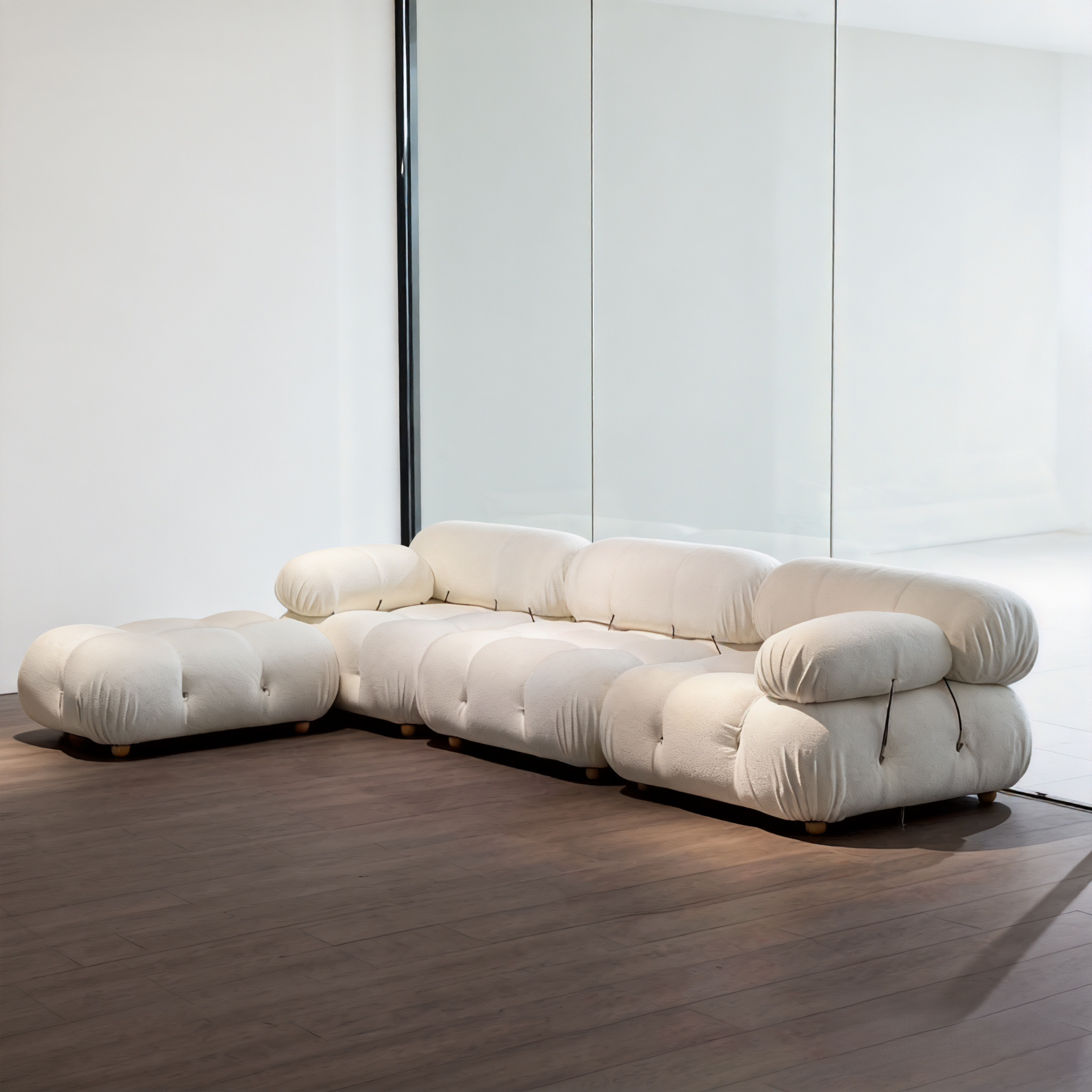 Modern White Tufted Modular Sectional Sofa with Ottoman