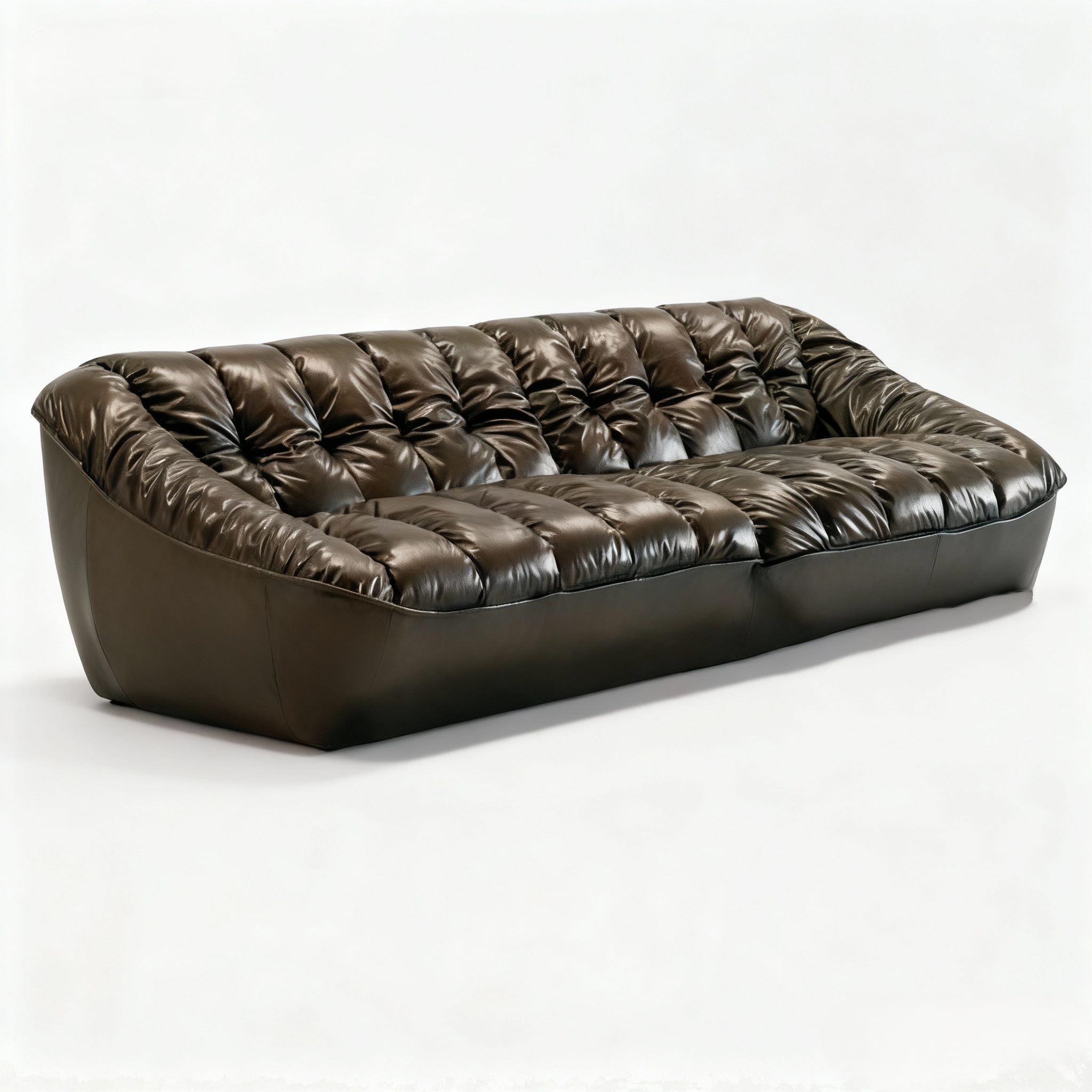 English This sofa is crafted from dark brown leather and features a unique quilted tufted design, presenting a vintage yet stylish puff texture. The leather material is high – grade and easy to maintain, and the fluffy filling provides an immersive sitting and lying experience. Its smooth curved shape can easily fit into various home styles such as vintage and modern, making it a personalized choice to enhance the style and comfort of the space.